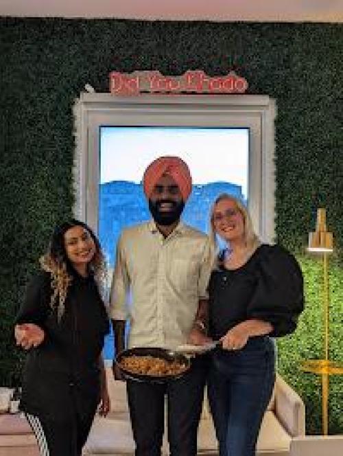 In this private chef experience, you'll enjoy authentic vegetarian tikka masala, samosas and more prepared by Chef Raina. First, you'll have samosas stuffed with potato and peas and served with a sweet and sour chutney. Then, it's time for crispy fried spinach fritters, followed by paneer tikka masala, a warm and fragrantly spiced dish made with paneer cheese. Soak up every bit of the tikka masala sauce with fresh roti bread served on the side. For dessert, enjoy gulab jamun, a sweet and satisfying treat.
